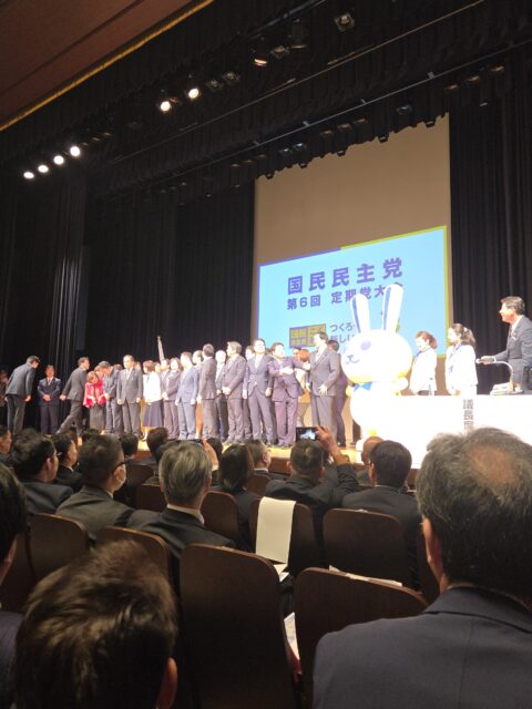 玉木代表の挨拶から始まった第1部では今年度の活動目標を、第2部では玉木代表や榛葉幹事長の裏話の暴露など、ユーモアたっぷりの一体感のある大会となりました。